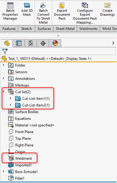 - Weldment gradnik ne bo dodan,če komponenta že vsebuje Cut-List gradnik